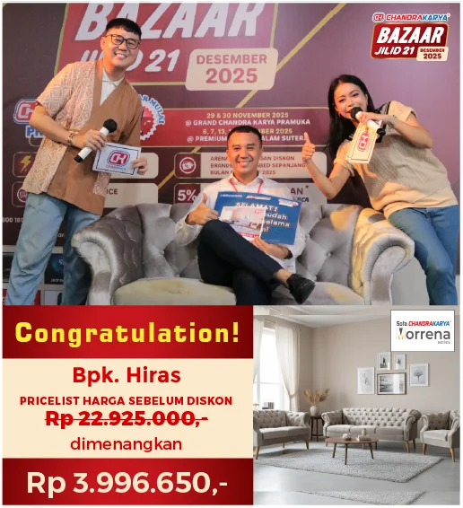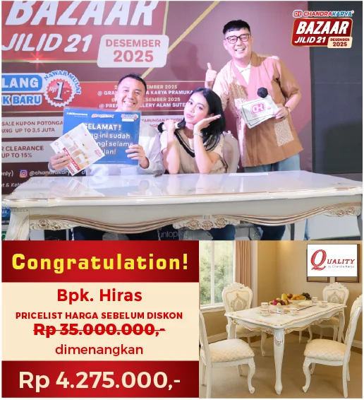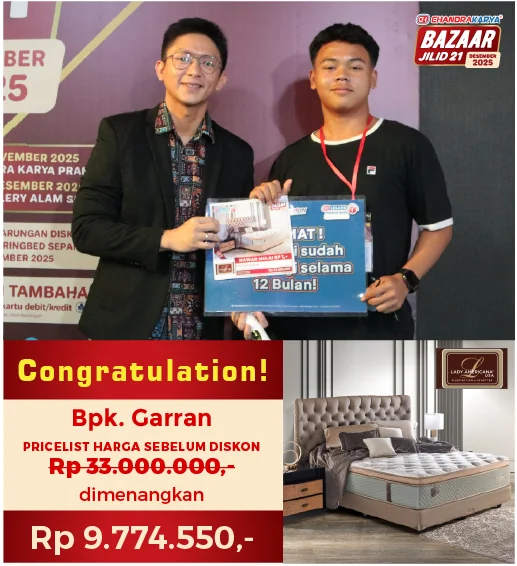 Disclaimer: Chandra Karya tidak membuat program promosi penaikan rating dengan iming-iming cashback ataupun hadiah lainnya secara online. Apabila ada penawaran mengatasnamakan hal-hal tersebut, bukanlah tanggung jawab dari Chandra Karya